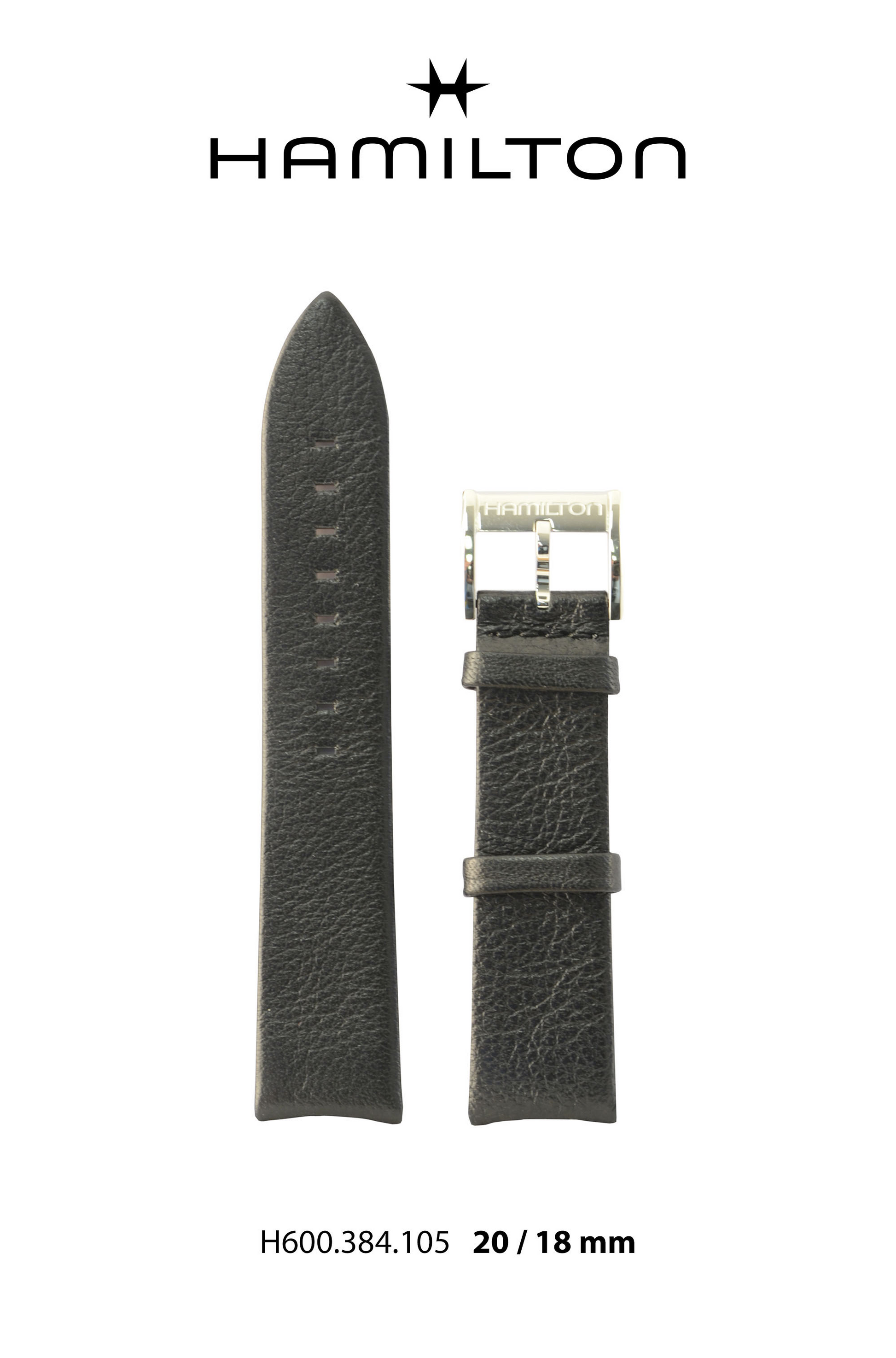 Hamilton IntraMatic Leather-Black Watch Strap 20-mm Ref H690.384.105 - Genuine OEM