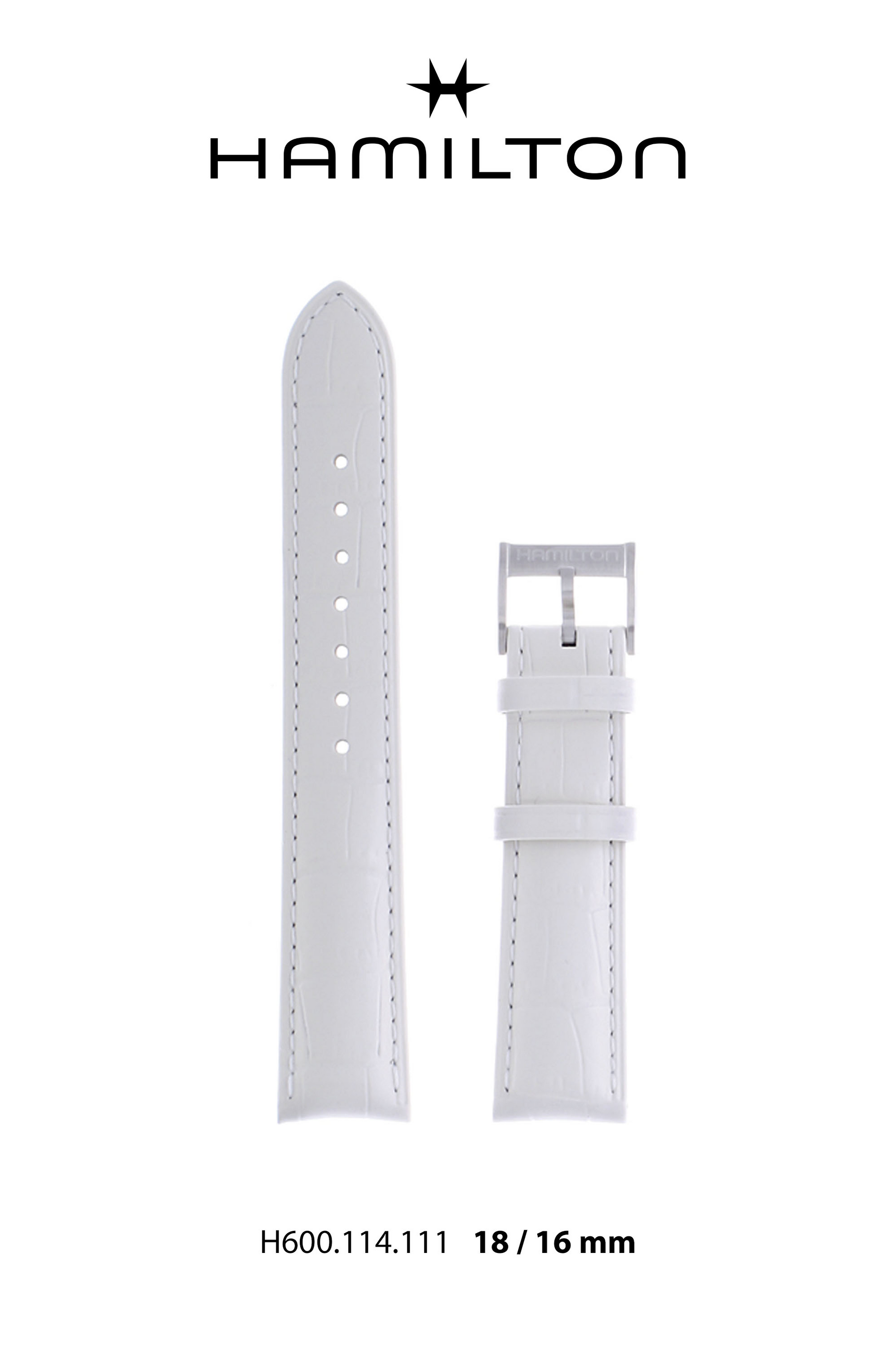 Hamilton Ardmore Leather-White Watch Strap 18/16mm Ref H690.114.111- Genuine OEM